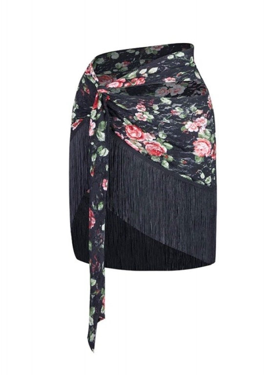 Design: The set includes a gorgeous floral lace bodysuit with delicate spaghetti straps and a flattering sweetheart neckline. The matching mini skirt features a solid black base with a coordinating lace overlay panel and flowing tie sash that creates beautiful movement.